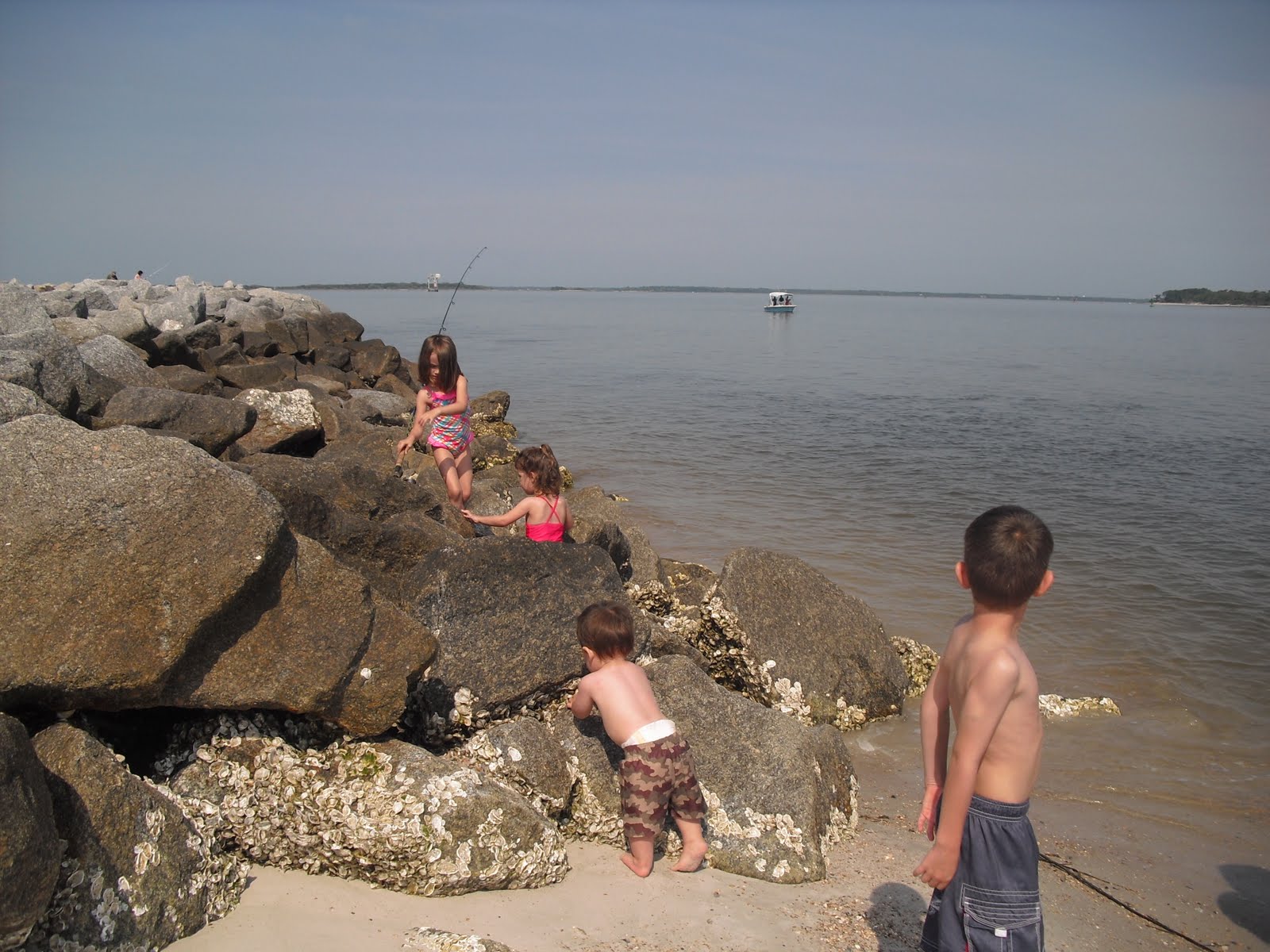 John fished all morning. He caught a whiting. It wasn't big enough to feed the whole family, so he gave it to another couple fishing nearby. Elijah was fascinated by it. He kept trying to grab it out of the bait bucket.